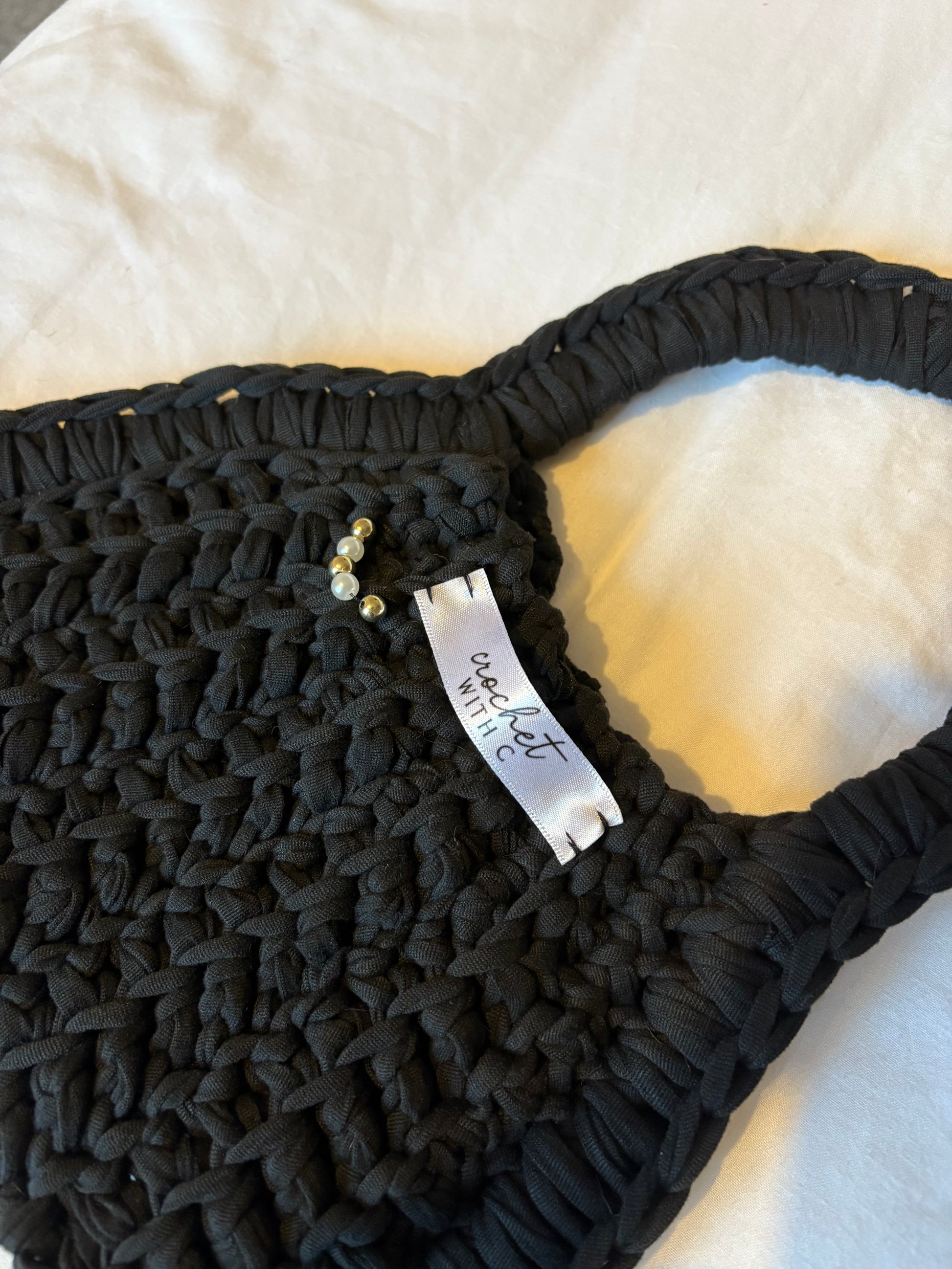 Shoulder bag made using recycled T-shirt yarn, using all the scraps left over from my main collection of bags.