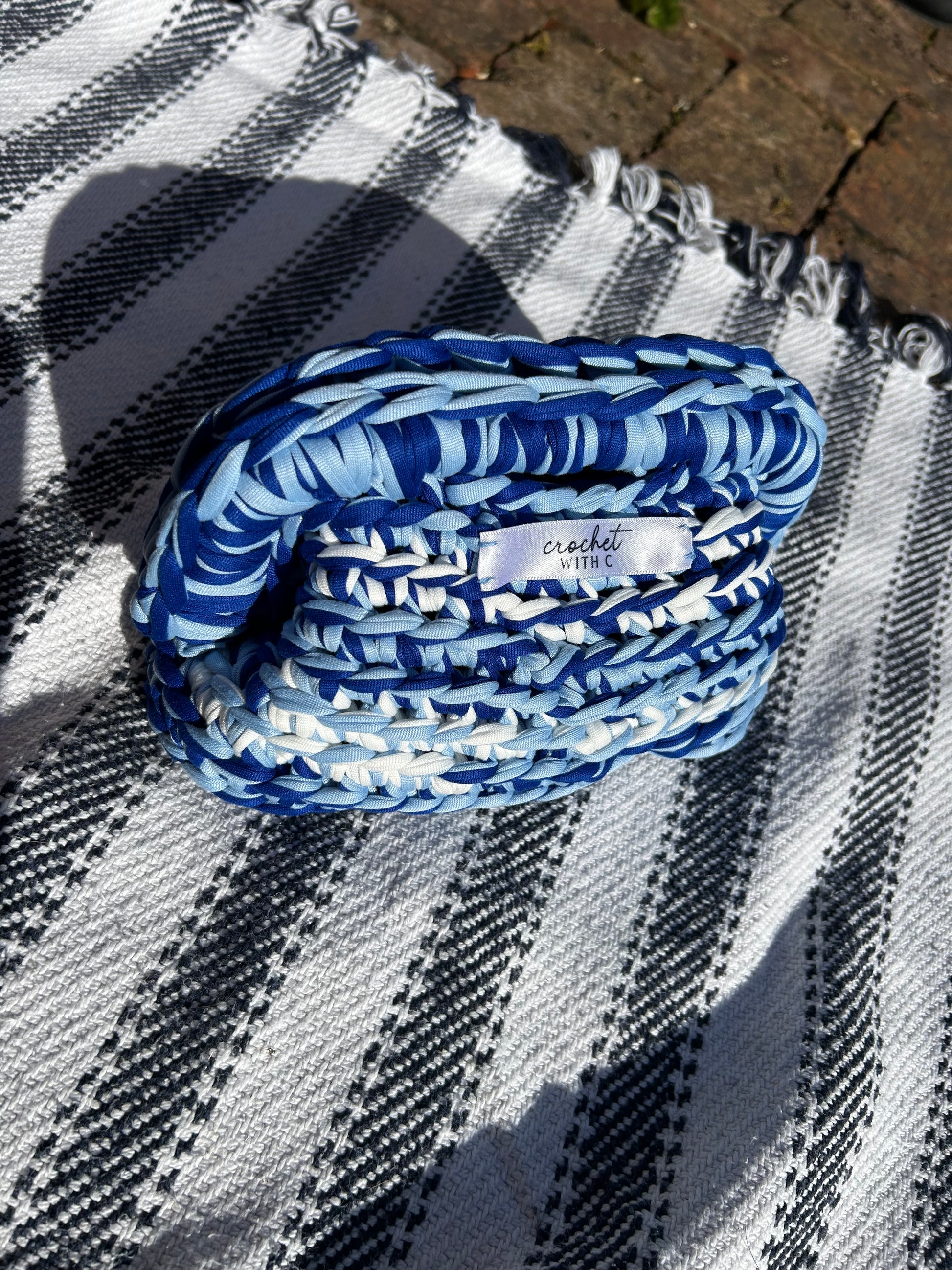 Made with high quality recycled T Shirt Yarn, including a hand sewn Crochet With C Label. This is the perfect bag you need in your wardrobe.